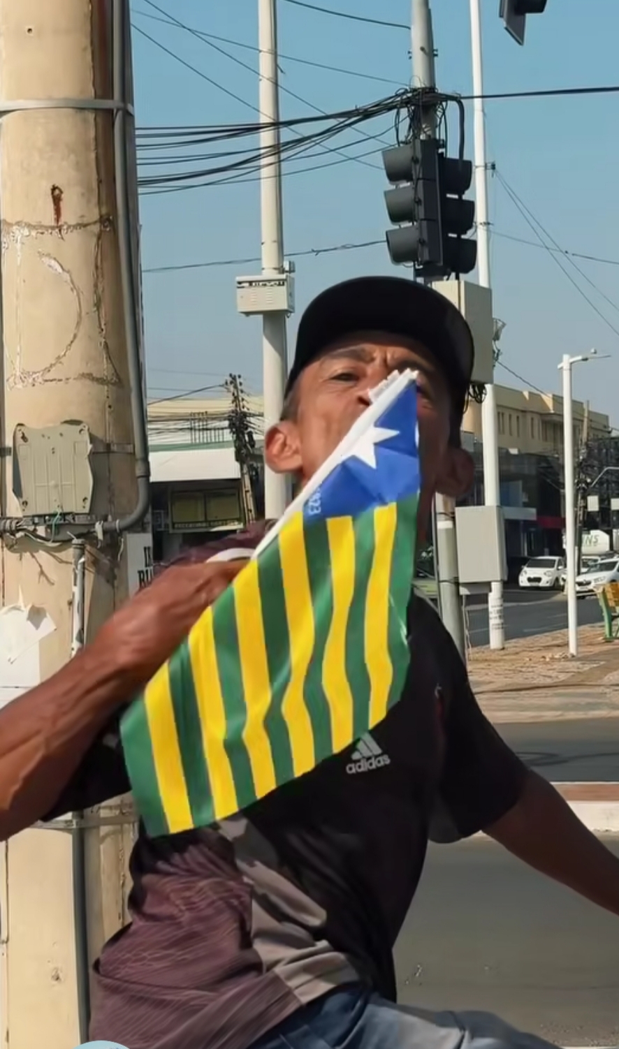 Foto: Redes sociais Cidadão beija a bandeira e demonstra seu amor ao Piauí