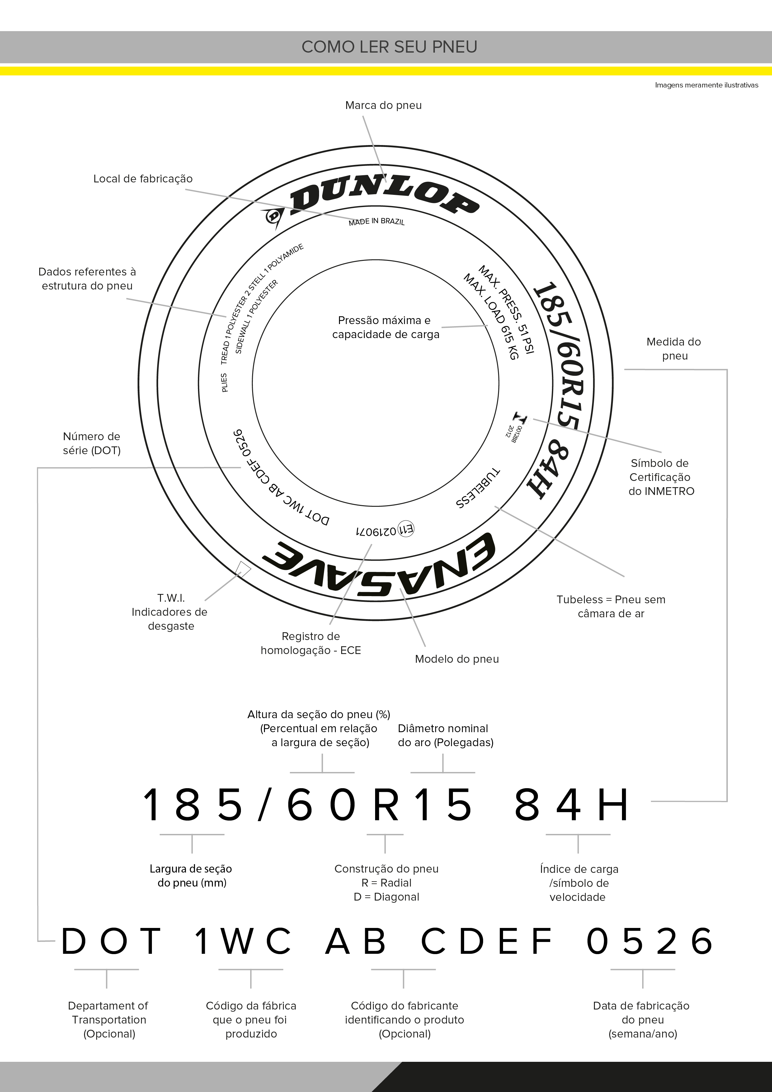 A Dunlop informou como interpretar as informações gravadas nos pneus, destacando que cada sequência de números e letras revela dados fundamentais para segurança, desempenho e economia. A leitura correta permite ao motorista identificar dimensões, capacidade de carga, velocidade máxima suportada e data de fabricação, elementos que influenciam diretamente na condução e na durabilidade do conjunto.