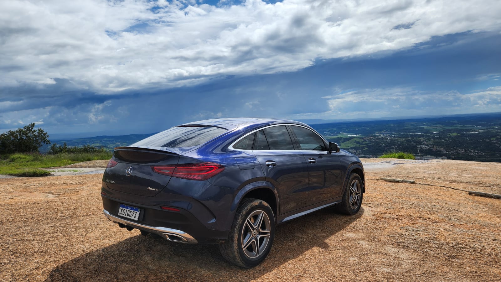 Para avaliar a capacidade fora de estrada, subi o trecho da Pedra Grande, em Atibaia. Com o modo off-road ativado, o sistema exibiu a função de capô transparente na tela central, permitindo visualizar virtualmente a área sob a dianteira do veículo por meio das câmeras 360°. A tração integral variável e a calibração da transmissão permitiram avançar por trechos de inclinação e piso irregular até o topo.No interior, a carroceria Coupé reúne duas telas de 12,3 polegadas integradas ao Widescreen Cockpit. O sistema MBUX pode ser operado por toque, comandos no volante com sensores táteis ou ativação por voz com o comando “Hey Mercedes”. O sistema de navegação com realidade aumentada projeta setas e indicações sobre a imagem da via. A integração com Apple CarPlay e Android Auto ocorre sem fio, e há carregamento por indução para smartphones.