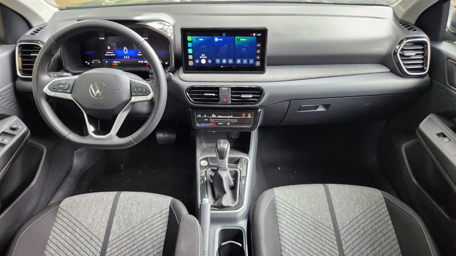 A versão Comfort reúne uma lista de equipamentos que inclui painel de instrumentos digital de oito polegadas e central multimídia VW Play Connect com tela de 10,1 polegadas. O sistema oferece conectividade com espelhamento de smartphones e serviços remotos. O modelo também dispõe de carregamento de celular por indução, portas USB tipo C e integração com aplicativos de navegação e entretenimento.
