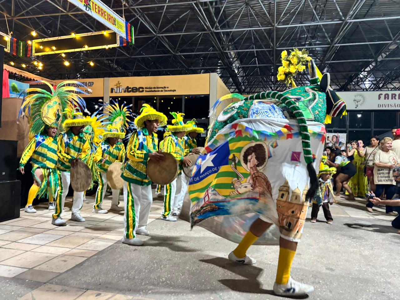 Abrindo as apresentações de encerramento deste sábado (15), a Companhia Calunga de Teatro e Bonecos, garantiu a diversão de crianças e adultos. Com 35 anos de trajetória e apresentações por todo o Brasil, e até fora dele, os artistas misturaram humor, poesia e conscientização através de uma apresentação com bonecos. Por volta das 18h, foi a vez do grupo de Bumba Meu Boi Imperador da Ilha, brilhar no palco terreiro, trazendo ao público a força da identidade, ancestralidade e memória da região norte e nordeste do Brasil.