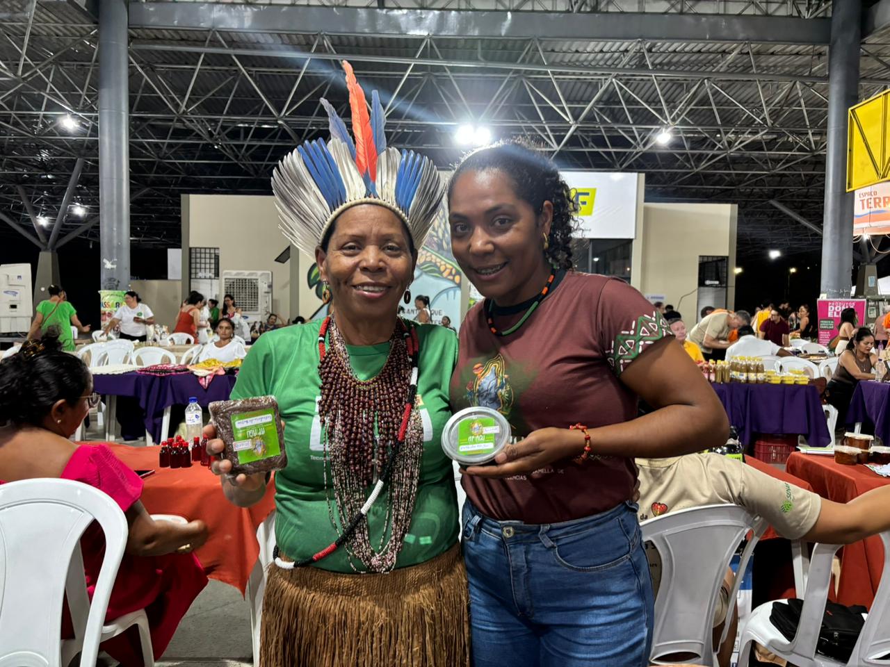 Em meio às apresentações de encerramento, a diversidade também podia ser percebida entre os mais de 200 agricultores, empreendedores e expositores vindos de diversas regiões do Piauí, como a Valdineide de Sousa e sua mãe, Maria da Conceição de Sousa, a cacica Dan, ambas da etnia Akroá-Gamella. Elas moram no assentamento Santa Teresa, que fica há 22 km de distância da cidade de Uruçuí. Para a feira, elas trouxeram doces, frutas, legumes e xaropes.
