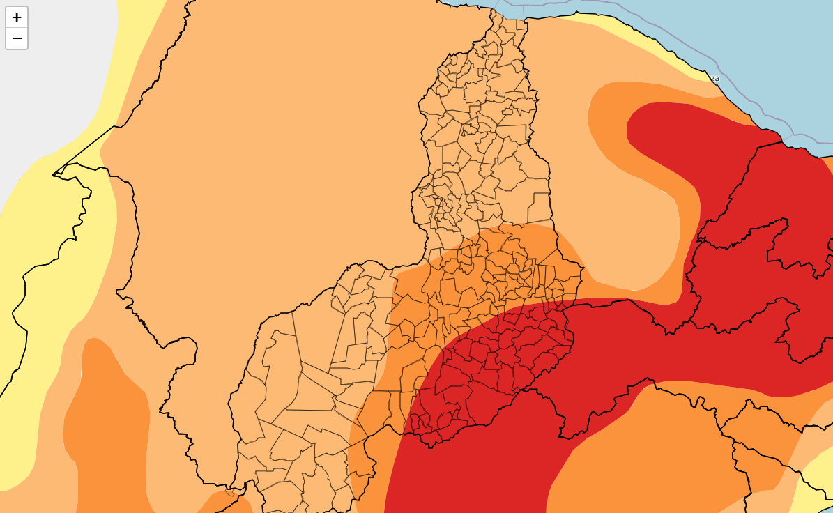 Foto: Semarh Mapa do Monitor de Secas mostra que 100% do território do Piauí permanece afetado pela estiagem.