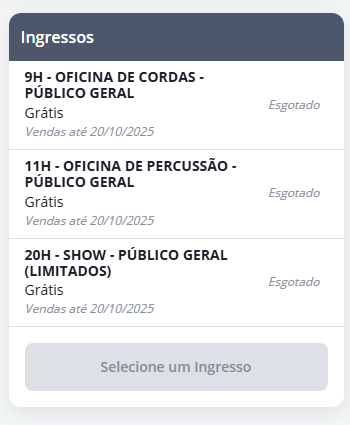 No site oficial do evento, todos os ingressos já estão esgotados, mesmo com o grande interesse do público. Veja na imagem abaixo: