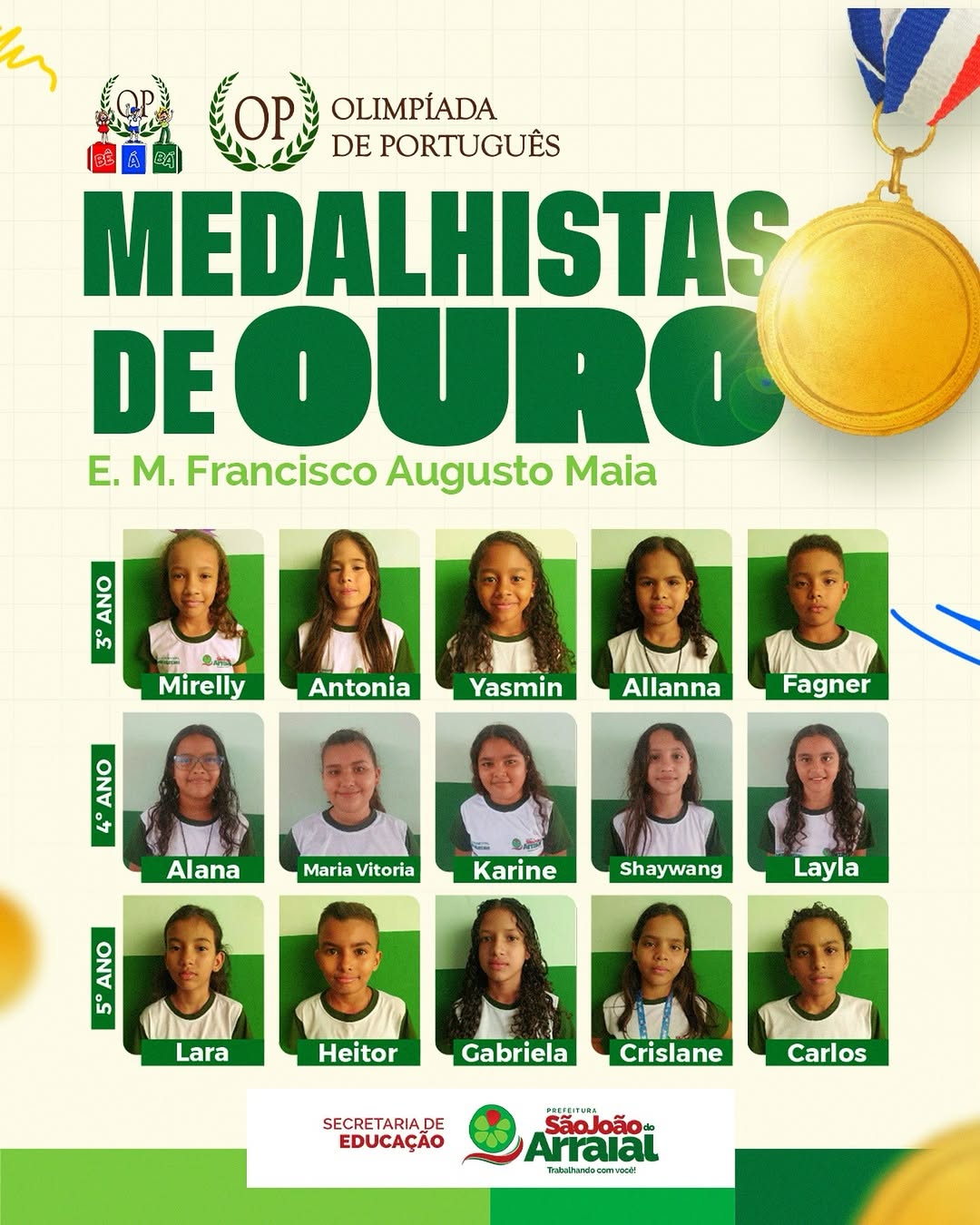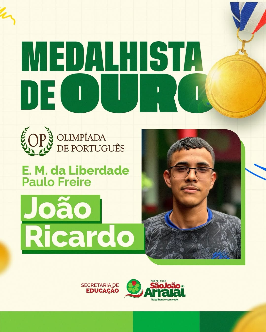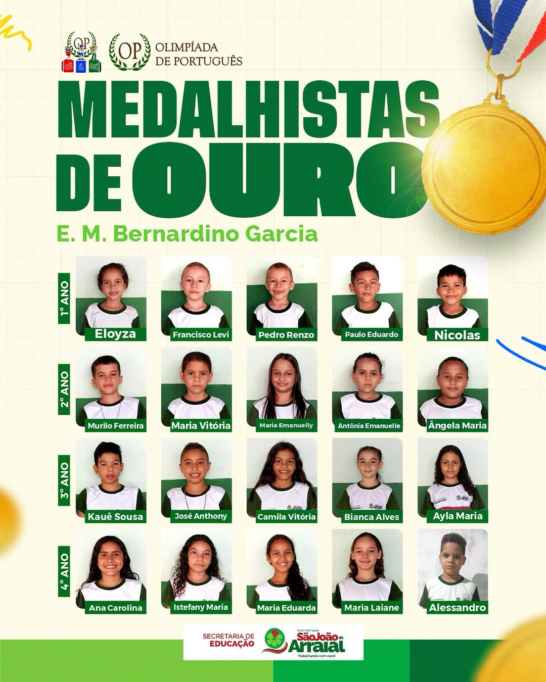 “Essas conquistas demonstram o potencial dos nossos alunos e o empenho dos educadores em promover uma educação pública de excelência. É um orgulho para São João do Arraial. Esse resultado vai além das medalhas; ele mostra que estamos no caminho certo para transformar vidas através do conhecimento”, afirmou a secretária.