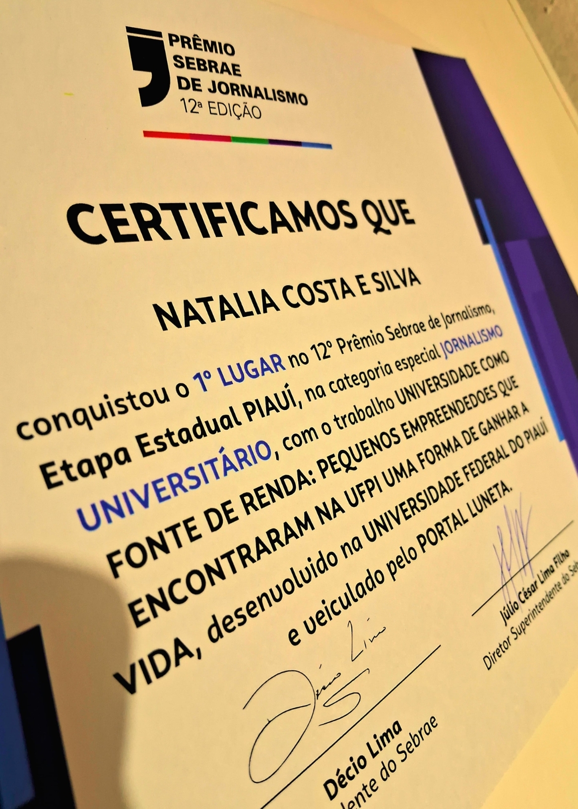 #Prêmio Sebrae de Jornalismo #Natália Costa #Jornalismo Universitário #UFPI #pequenos negócios #Portal Piauí Hoje #jornalismo piauiense #Sebrae #premiação jornalística #nova geração