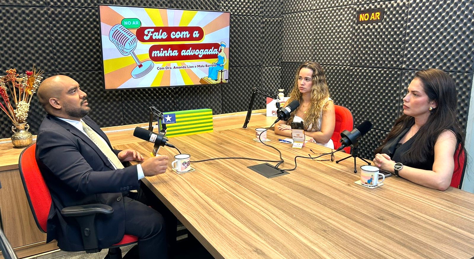 Amanda Lion e Malu Barreto recebem o advogado Romário Santos