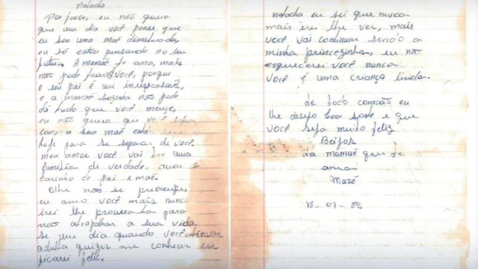 Carta deixada pela mãe biológica em 1989 A descoberta na infância e o choque da adolescência