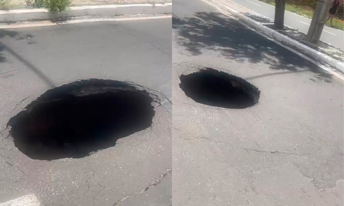 Um buraco se abriu na avenida Jockey Clube, ao lado do Riverside Shopping, provocando a interdição do trecho entre as avenidas Ininga e Raul Lopes, no sentido Raul Lopes–Ininga, no começo da tarde desta quarta-feira (18),