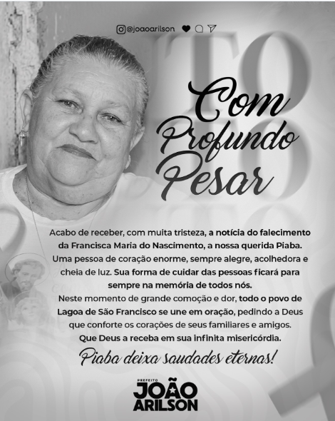 A morte gerou forte comoção na cidade. Em nota, o prefeito João Arilson lamentou o falecimento e destacou as qualidades de Francisca Maria.