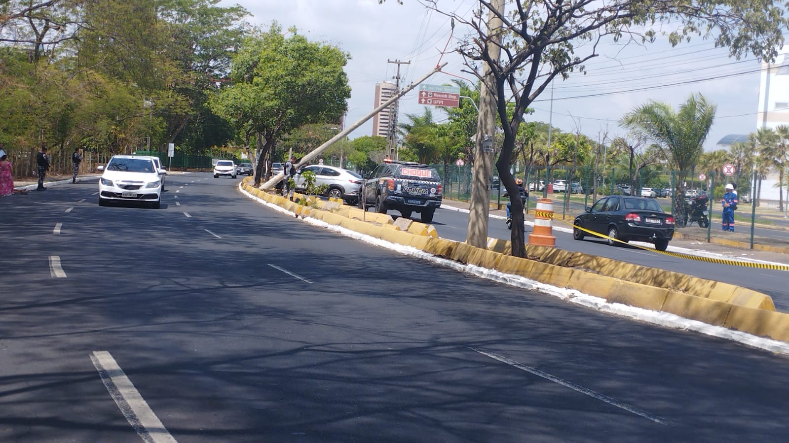 Poste cai na avenida Raul Lopes após acidente em frente ao Teresina Shopping