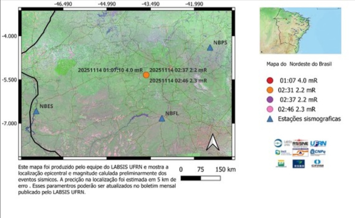 O epicentro teria sido em Parnarama, na fronteira com o Piauí, segundo o Laboratório Sismológico da Universidade Federal do Rio Grande do Norte (UFRN), que ainda monitora o fenômeno. Ao todo, ao menos quatro tremores já foram registrados nas últimas horas.