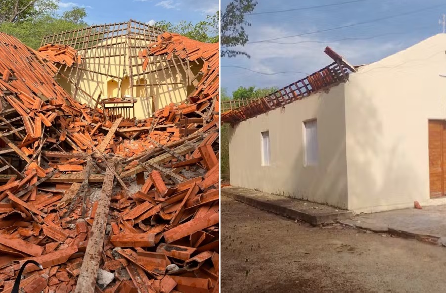 De acordo com relatos de moradores da comunidade, o desabamento ocorreu de forma repentina e comprometeu grande parte da estrutura do templo religioso, que é utilizado para celebrações e encontros comunitários.