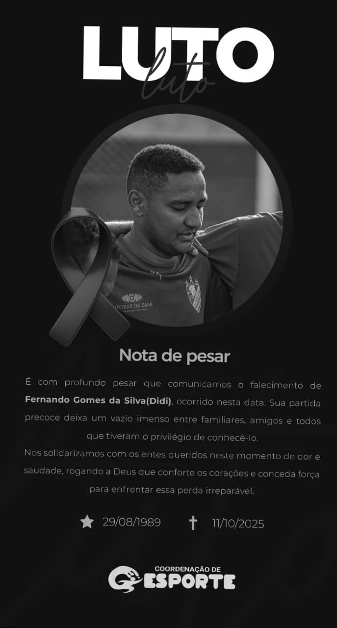 O jogador de futebol Fernando Gomes da Silva, conhecido como Didi, de 36 anos, morreu após passar mal durante uma partida do Campeonato Municipal de Futebol em Angical do Piauí, no sábado (11). A suspeita é que ele tenha sofrido uma parada cardiaca.