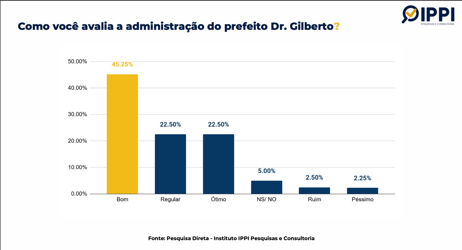 O alto índice de aprovação de Gilberto Jr. ultrapassa o percentual de votos obtidos pelo prefeito nas últimas eleições, indicando que o trabalho realizado superou as expectativas da população e se tornou um incentivo para mais dedicação à cidade.