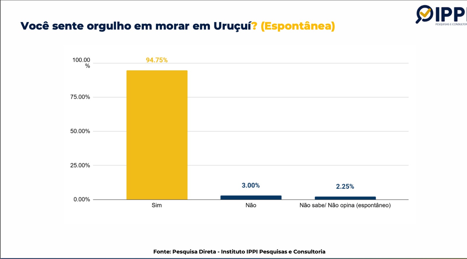 94,75% dos entrevistados sentem orgulho de morar em Uruçuí.