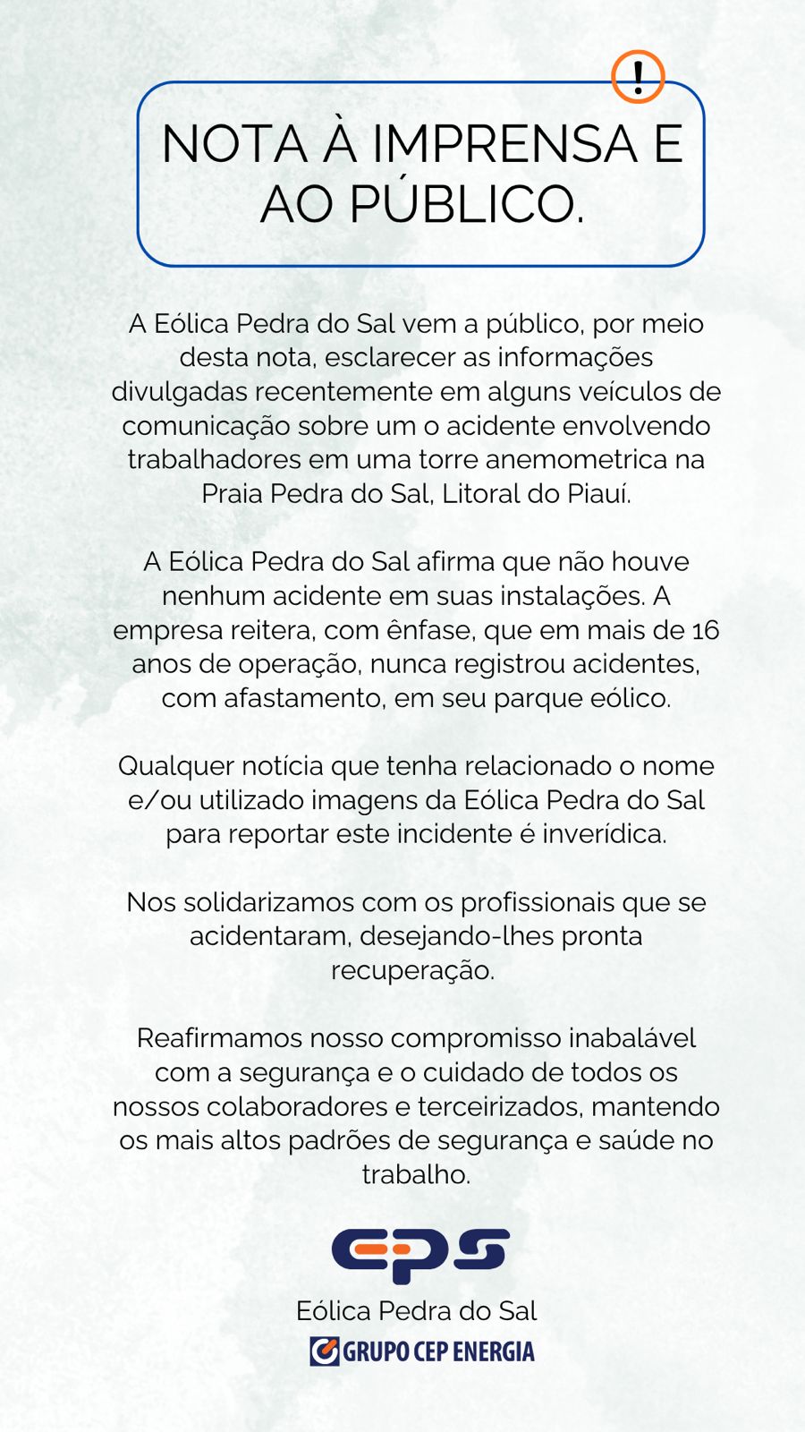 O incidente se deu em uma outra usina eólica localizada na região da Praia Pedra do Sal, no litoral do Piauí. Lamentamos o equívoco e o texto foi devidamente corrigido.