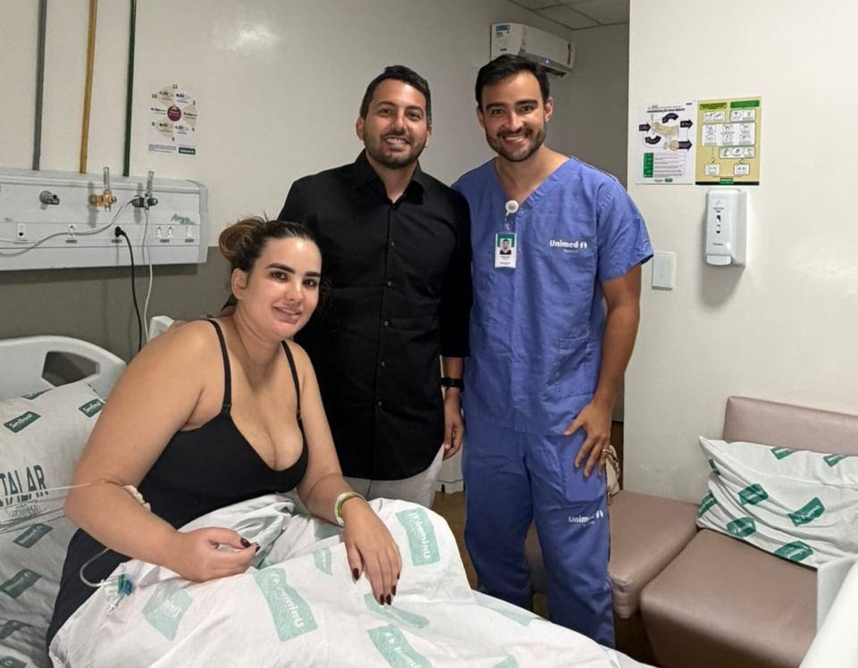 O médico Vinícius Dias visitou a deputada estadual Bárbara do Firmino nesta quarta-feira (15), durante sua internação em um hospital particular de Teresina. A parlamentar havia sido internada na noite de terça-feira (14) após passar mal em sua residência. Diagnosticada com uma crise aguda de apendicite, ela foi submetida a uma cirurgia de urgência.