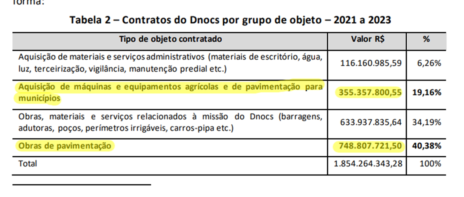 A CGU destacou que o foco desviado é evidente na comparação dos gastos. O montante contratado apenas com obras de pavimentação (R$ 748,8 milhões) superou em 18% os recursos destinados à atividade-fim do Dnocs (R$ 633 milhões).
